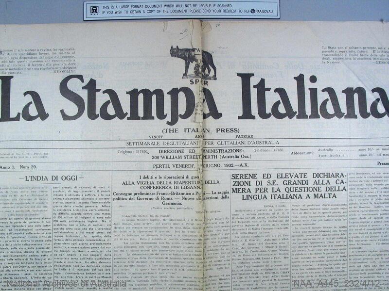 | Foreign Language Newspaper "La Stampa Italiana" | Text |