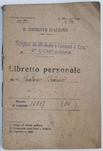 | Regio Esercito Italiano. Libretto personale di Santoro Soccorso. Numero di matricola 30867 (50) | Text |