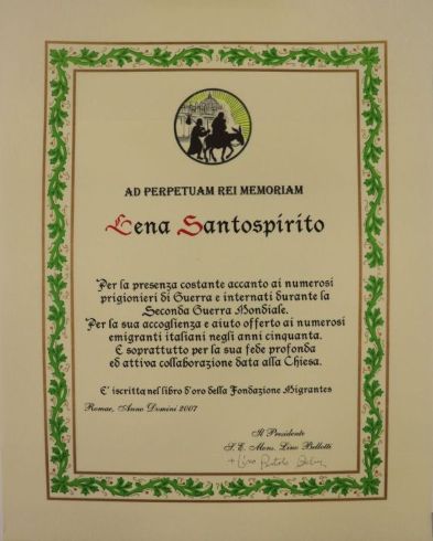 | Posthumous award to Lena Santospirito, 2007 | Text |
