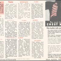 This record contains a leaflet explaining Chest X-Ray requirements for new arrivals in Australia as part of a campaign against tuberculosis.