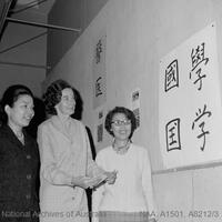 Japanese week in Australian city - [three women looking at Japanese characters on a wall] [photographic image] / photographer, R W Nicol. 1 photographic negative: b&w, acetate