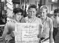 Students from the Oxley High School, Tamworth, NSW, examine a copy of the Malaysian newspaper "Utusan Melayu" -