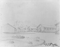 Drawing of the dormitory huts at the Australian Prisoner of War and Internment Camp, Tatura, Victoria, drawn by Giorgio Scola. With kind permission of CO.AS.IT. Italian Historical Society, Melbourne