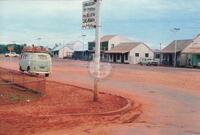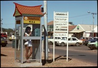 Chinese architectural style telephone box and street sign in five languages, Carnarvon Street, Broome