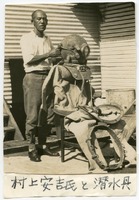 BA2754/17: Yasukichi Murakami with diving suit. The Japanese on the bottom reads Mr Yasukichi Murakami and diving equipment. -